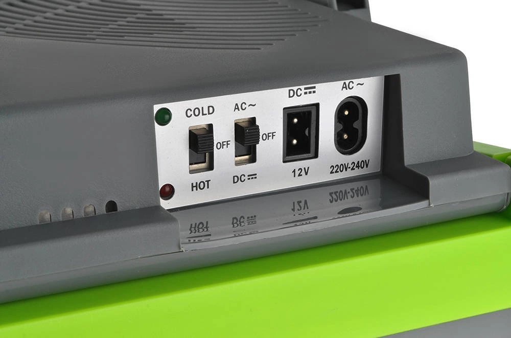 W tej praktycznej lodówce turystycznej znajdują się dwa gniazda, dzięki czemu znacznie zwiększa się pole jej wykorzystania. Pierwsze gniazdo umożliwia podłączenie lodówki z grzaniem do zapalniczki samochodowej 12V, dzięki czemu lodówka może być włączona podczas wielogodzinnej jazdy – np. w przypadku dalekiej wycieczki. To idealne rozwiązanie także dla zawodowych kierowców. Drugie gniazdo lodówki samochodowej pozwala na jej zasilanie w każdym pomieszczeniu poza samochodem. Można ją podłączyć za pomocą kabla do sieci 220-240V i używać, jako podręczną lodówkę na działce czy w domkach letniskowych.