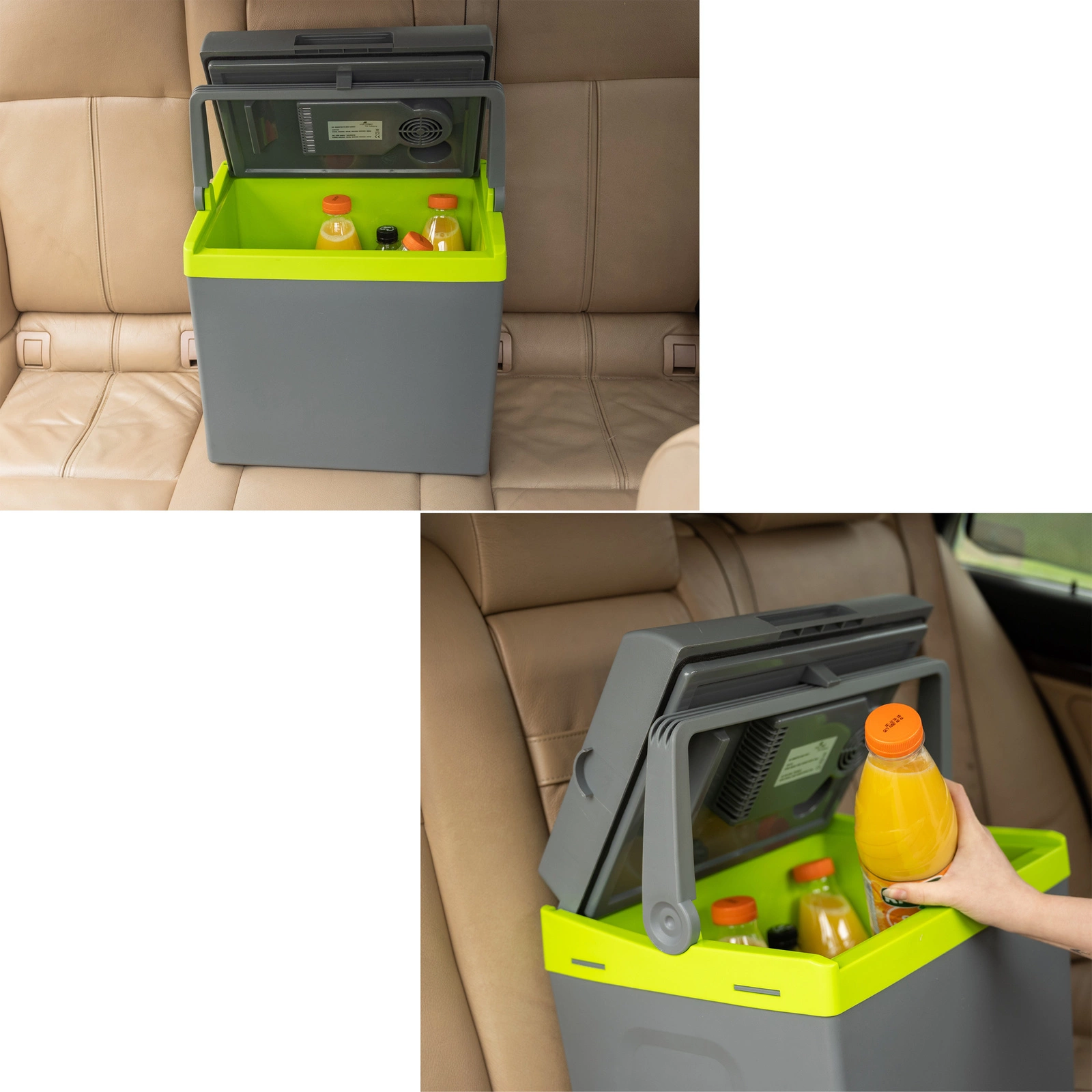 Produkt 2w1, który pokochają wszyscy miłośnicy częstych podróży – zarówno letnich, jak i zimowych. Lodówka turystyczna z funkcją grzania to rozwiązanie idealne na każdą porę roku. Lodówka samochodowa latem sprawdzi się do przechowywania i ochładzania produktów spożywczych i napojów (chłodzi do temperatury ok. 15-20 stopni poniżej temperatury otoczenia), natomiast zimą do ich lekkiego podgrzewania (temperatura podgrzewania do ok. 55-65 stopni). Lodówka z grzaniem ma dużą pojemność (aż 28 l), dzięki czemu zmieścimy w niej wszystko, co będzie nam potrzebne na piknik, ognisko, wyjazd czy turystyczną wyprawę.