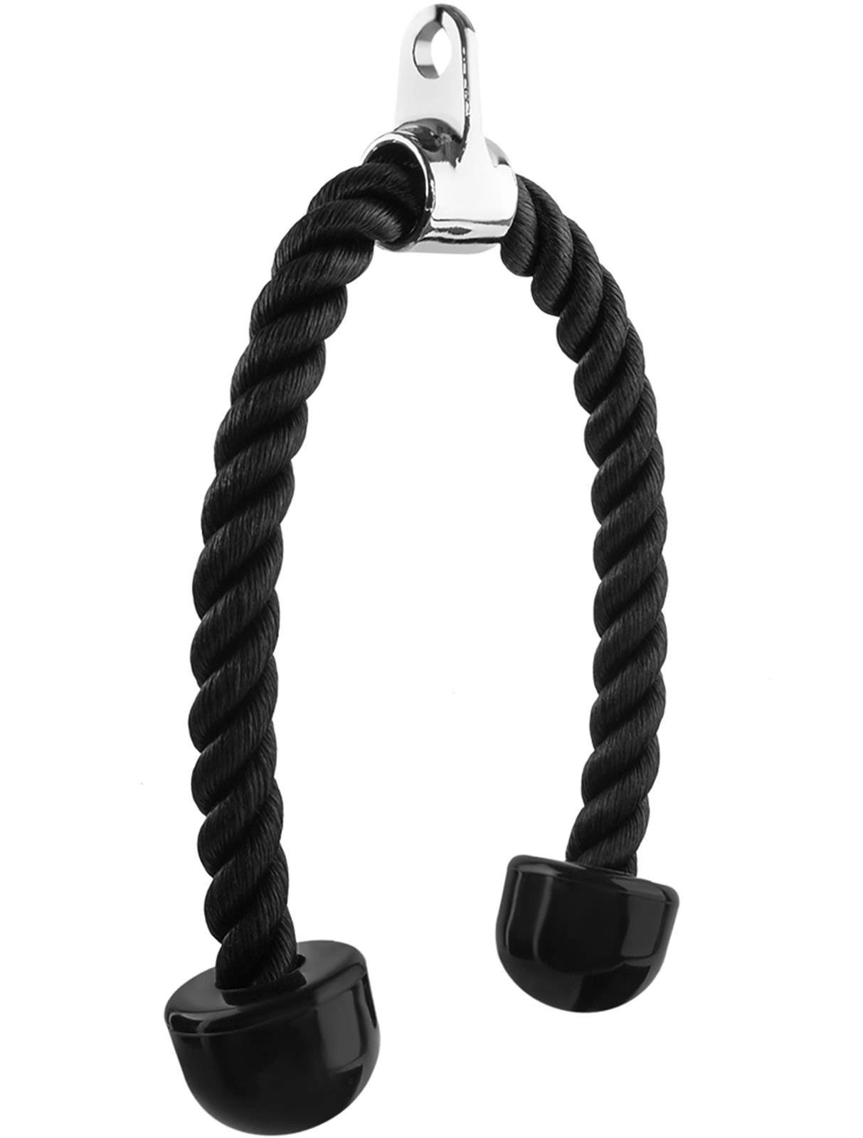 Sznur do wyciągu TRIZAND to solidna przystawka do atlasu i maszyn siłowych, która poprawia komfort oraz efektywność treningu tricepsa, barków, pleców i mięśni brzucha. Lina została wykonana z gęsto plecionego nylonu, dzięki czemu wytrzymuje obciążenie aż 200kg. Metalowa końcówka ułatwia montaż do wyciągu górnego lub dolnego, a gumowe ograniczniki stabilizują chwyt i zapewniają bezpieczeństwo nawet podczas mocnego treningu. Uchwyt sprawdza się zarówno w domowych, jak i profesjonalnych siłowniach. Idealnie nadaje się do prostowania ramion, ściągania liny, uginania przedramion czy ćwiczeń na mięśnie głębokie. To uniwersalne akcesorium, które znacząco poszerza możliwości treningowe, zwiększa zakres pracy mięśni i podnosi wygodę korzystania z wyciągu. Doskonały wybór dla osób, które chcą rozwijać siłę górnych partii i szukają trwałego osprzętu.