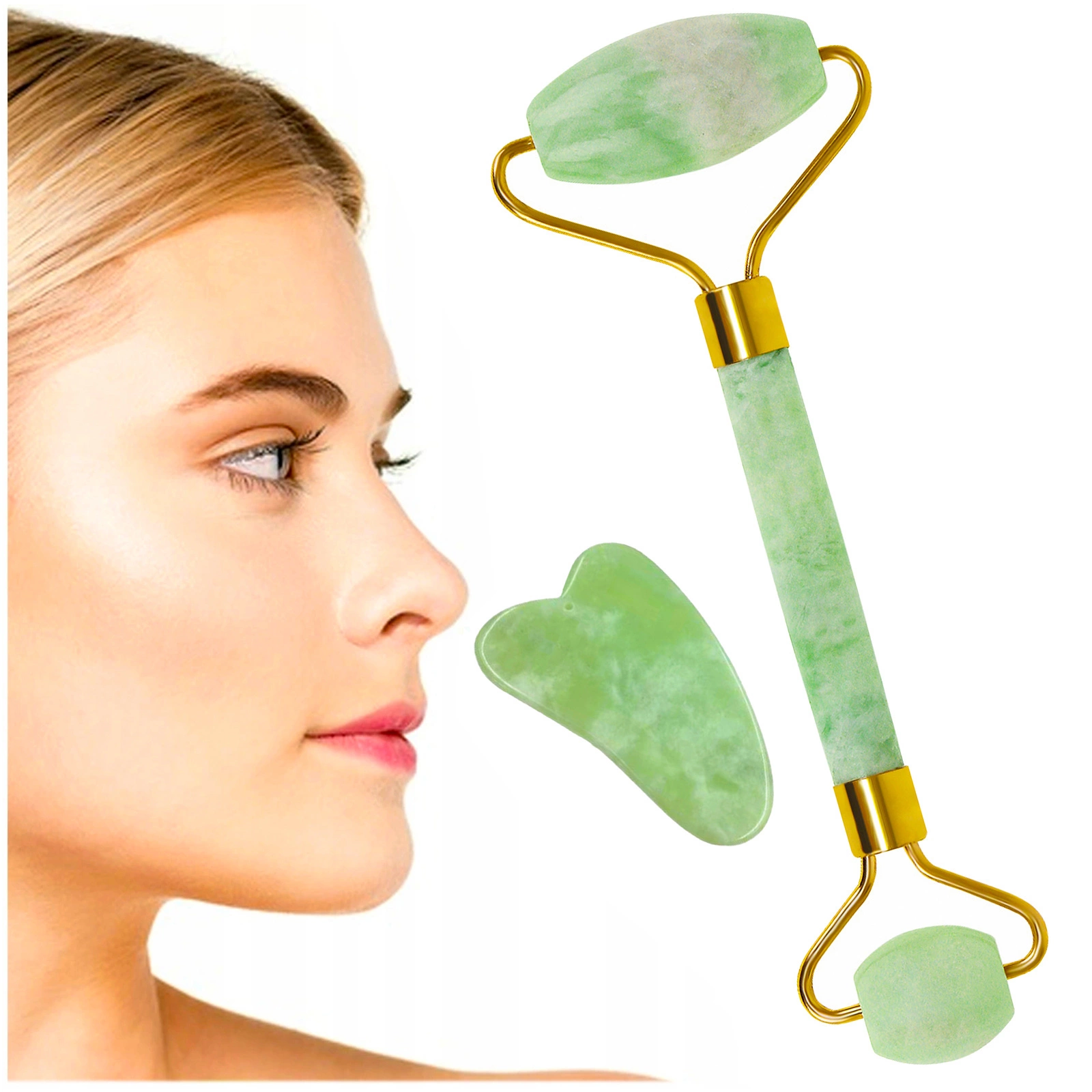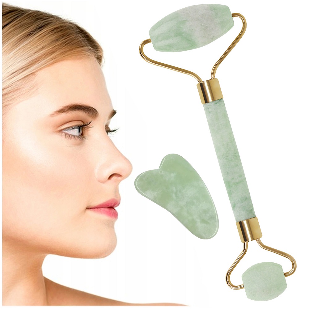 Masażer do twarzy jadeitowy, roller wałek z jadeitu + kamień płytka do masażu SOULIMA!