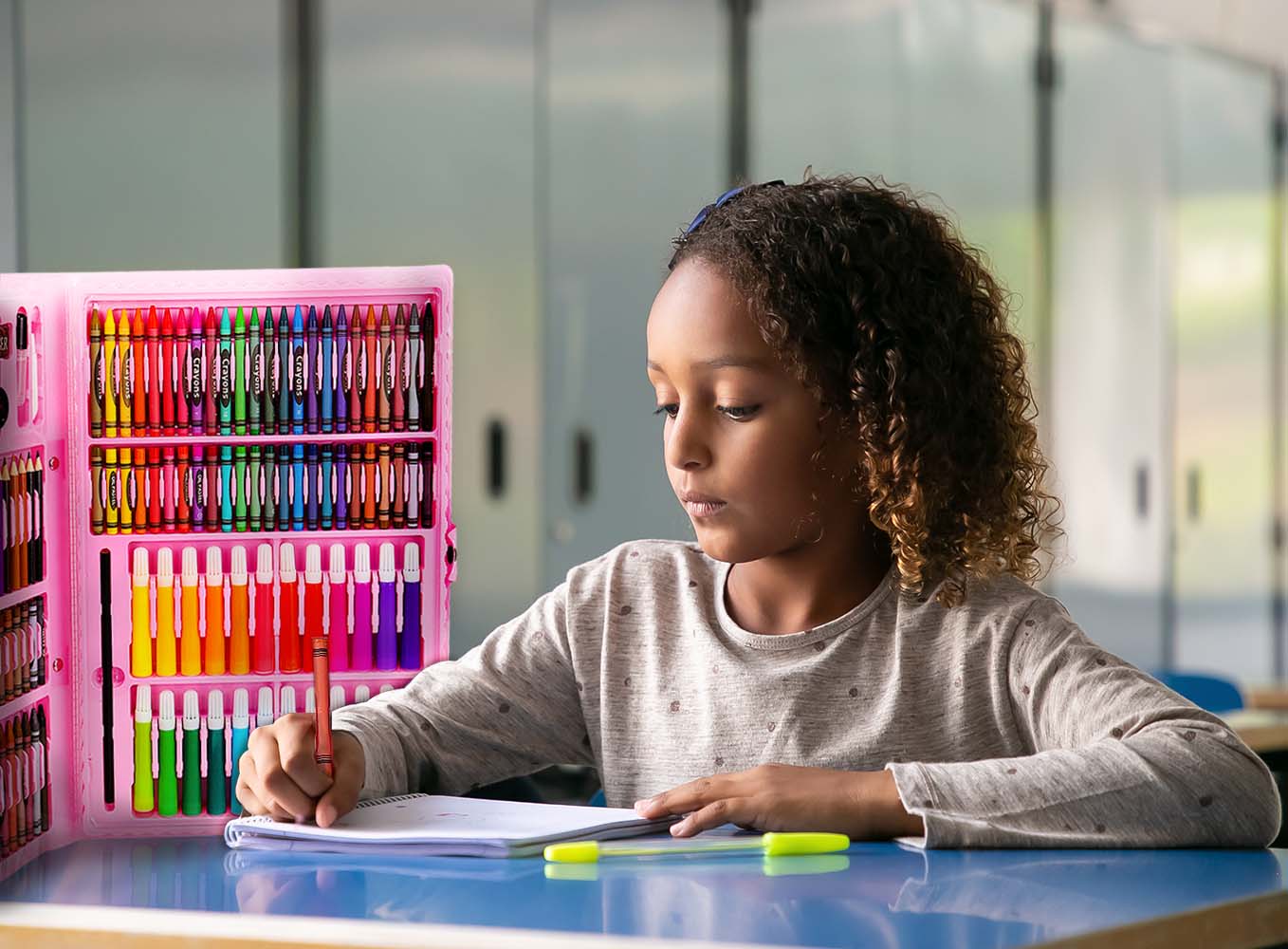 - PRAKTYCZNA WALIZKA – całość umieszczona jest w walizce, dzięki czemu transportowanie pełnej zawartości jest proste i komfortowe; dodatkowo posiada uchwyt umożliwiający wygodne przenoszeni. Po wykolorowaniu pierwotnych przyborów, można z powodzeniem zapełnić walizkę nowymi, własnymi akcesoriami.