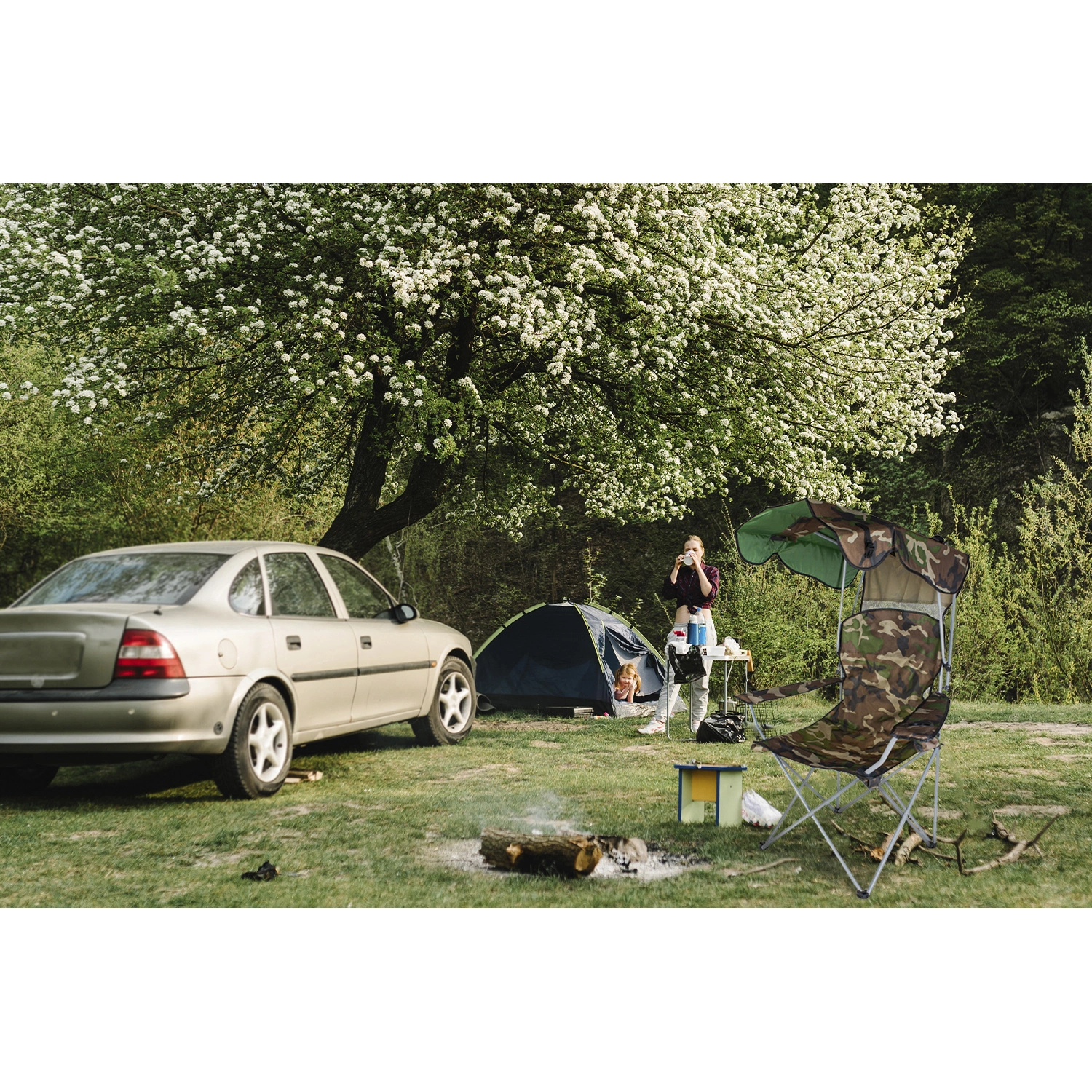 Dzięki dołączonemu do krzesła daszkowi możesz łowić ryby, lub relaksować się bez obaw o szkodliwe działanie promieniowania słonecznego. Po użyciu krzesło możesz zawinąć w daszek, który pełni również funkcję pokrowca.