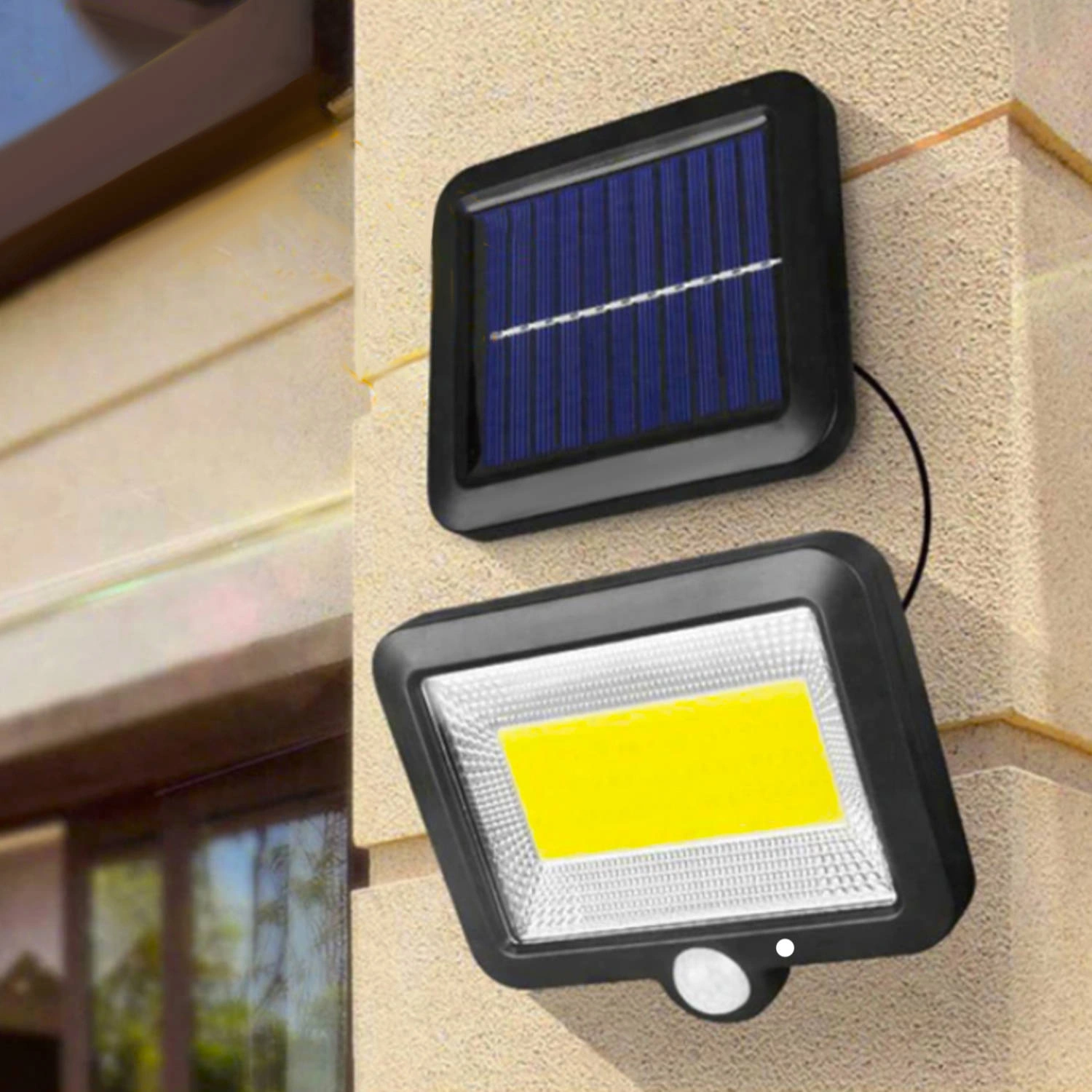 Lampa solarna zapewni Ci prawidłowe oświetlenie. Sprawdzi się w każdym miejscu, gdzie po zachodzie słońca widoczność jest znacznie ograniczona. Zastosowanie solarnej lampy dostarcza odpowiednią ilość światła przed wejściem do domu, garażu, piwnicy, a także na balkonie, tarasie lub w ogrodzie czy na podwórku. Lampa wyposażona jest w czujnik ruchu PIR, który automatycznie włącza oświetlenie. Czujnik ruchu, który włącza oświetlenie w momencie wykrycia aktywności w zasięgu pracy detektora. Natomiast czujnik zmierzchu reaguje na zmianę oświetlenia i w przypadku niedostatecznej ilości światła, uruchamia lampę.