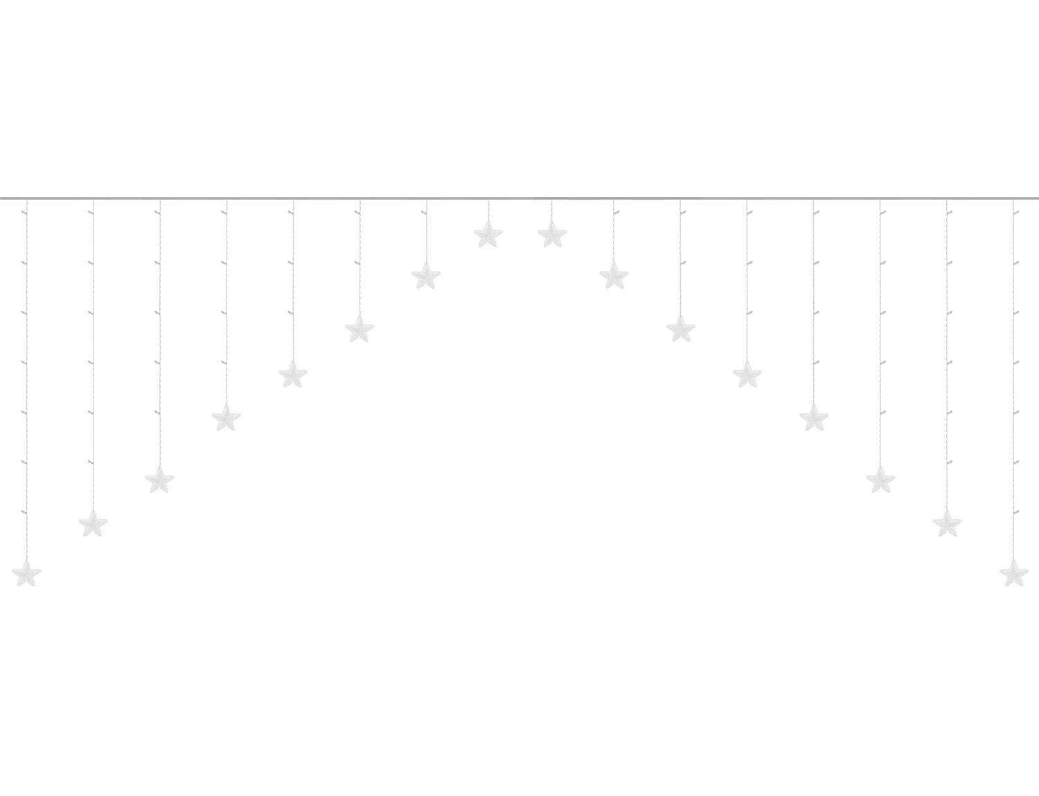 Ozdoba posiada 136 diod LED na 16 wiszących soplach z gwiazdkami. Teraz możesz spokojnie oświetlić okno, drzwi, a nawet furtkę do ogrodu. DO DZIEŁA!