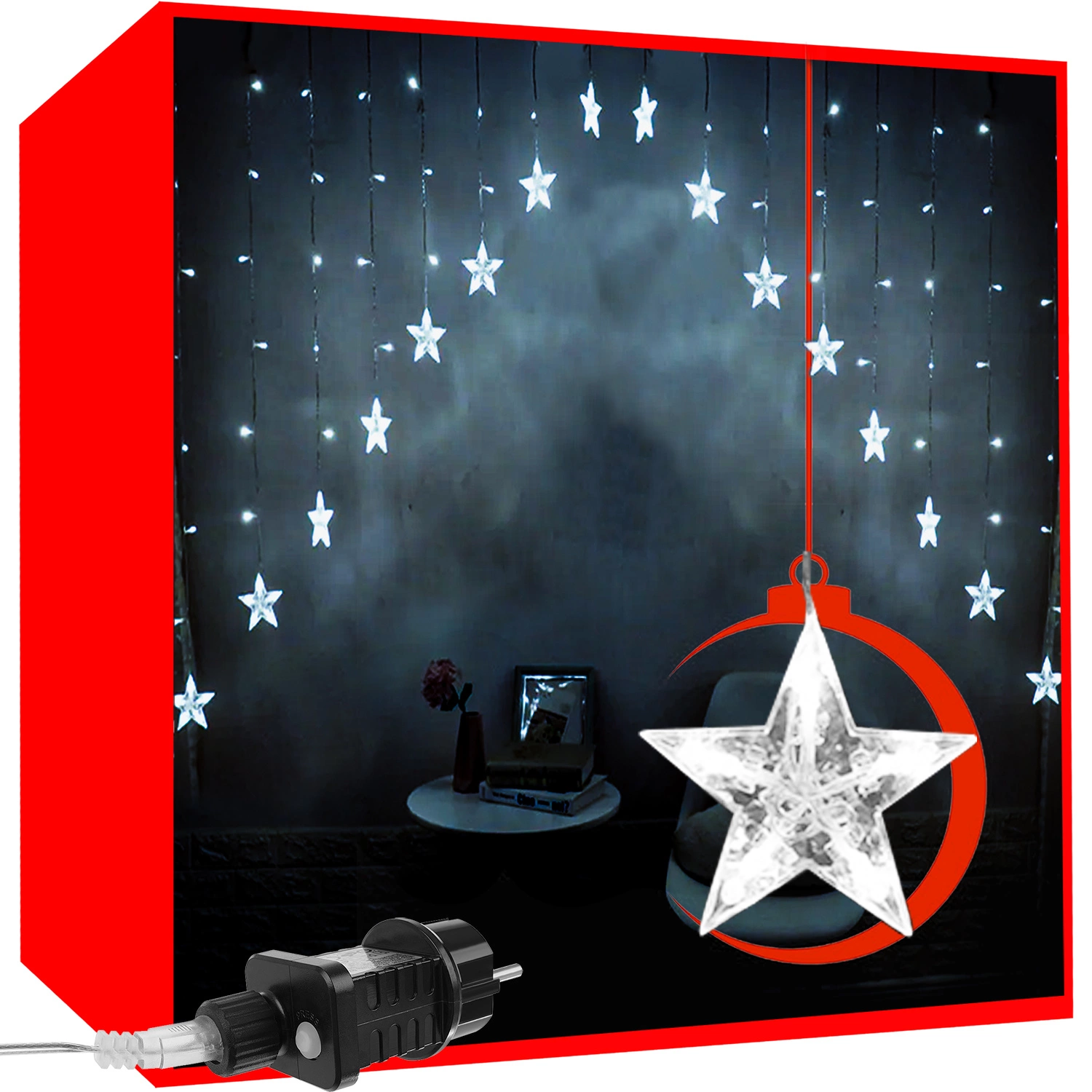 • LAMPKI GWIAZDKI LEDOWE – to wyjątkowe oświetlenie kurtynowe posiada aż 8 różnych trybów świecenia, co tworzy wyjątkową i niepowtarzalną dekorację każdego wnętrza, a nawet ogrodu. Posiadają różne sekwencje, które można przełączać za pomocą dołączonego do zestawu sterownika. Lampki zasilane są za pomocą prądu z sieci energetycznej, dzięki czemu nie musisz martwić się o ciągłą wymianę baterii.