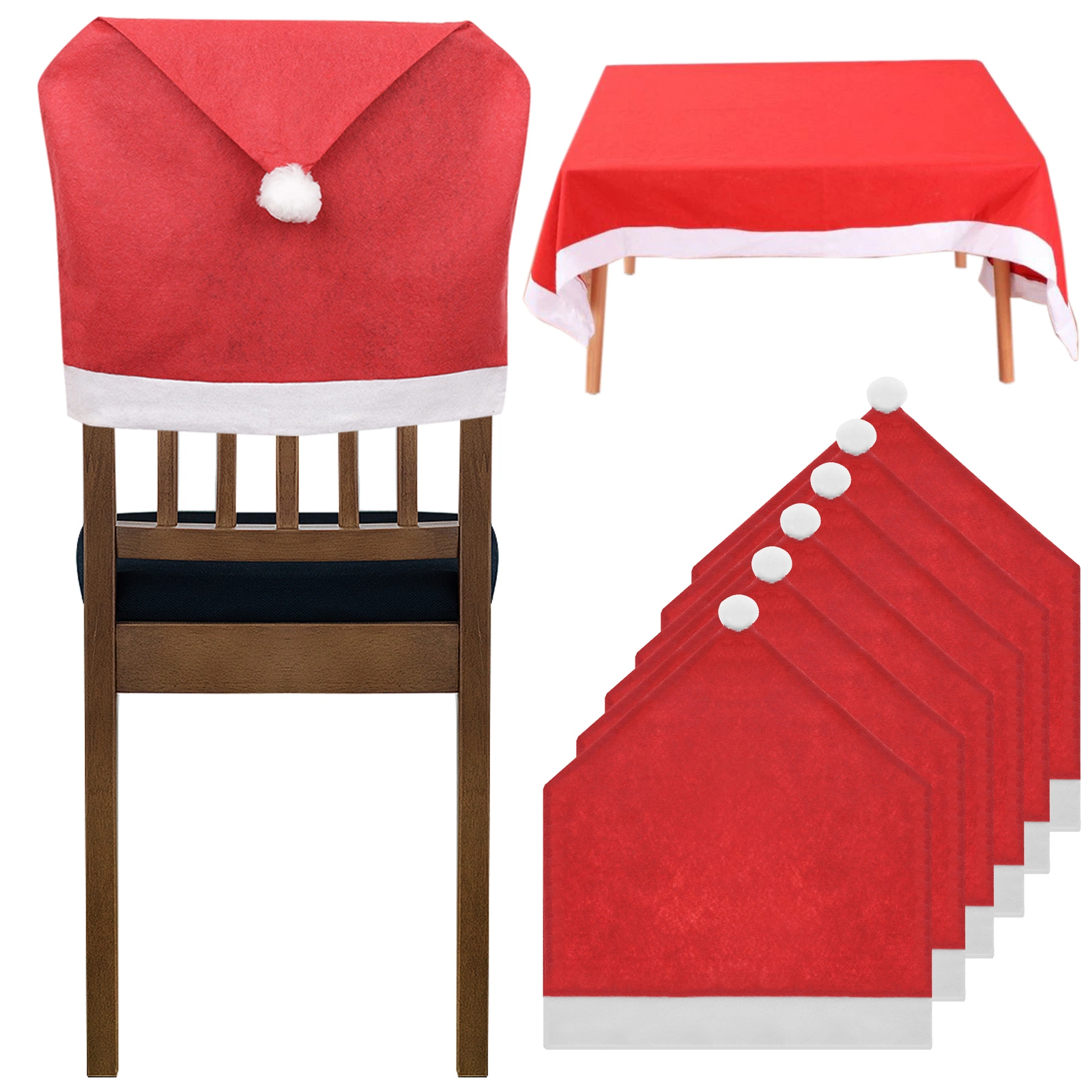 POKROWCE NA KRZESŁA CZAPKA ŚWIĘTEGO MIKOŁAJA + OBRUS