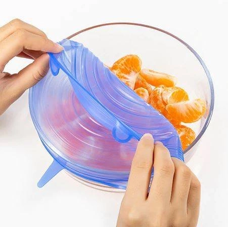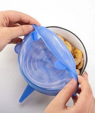 Zestaw pokrywek wykonanych z silikonu, dopasuje się do o różnego rodzaju naczynia, radzi sobie z każdym typem materiału (szkło, porcelana, stal, tworzywo sztuczne itp.). Każda z pokrywek wyposażona jest 4 specjalne uszka oraz ogonek przy brzegu. Pociągając za uszka możemy pokrywkę dokładnie naciągnąć na naczynie. Ogonek natomiast sprawi, że z łatwością zdejmiesz pokrywkę.