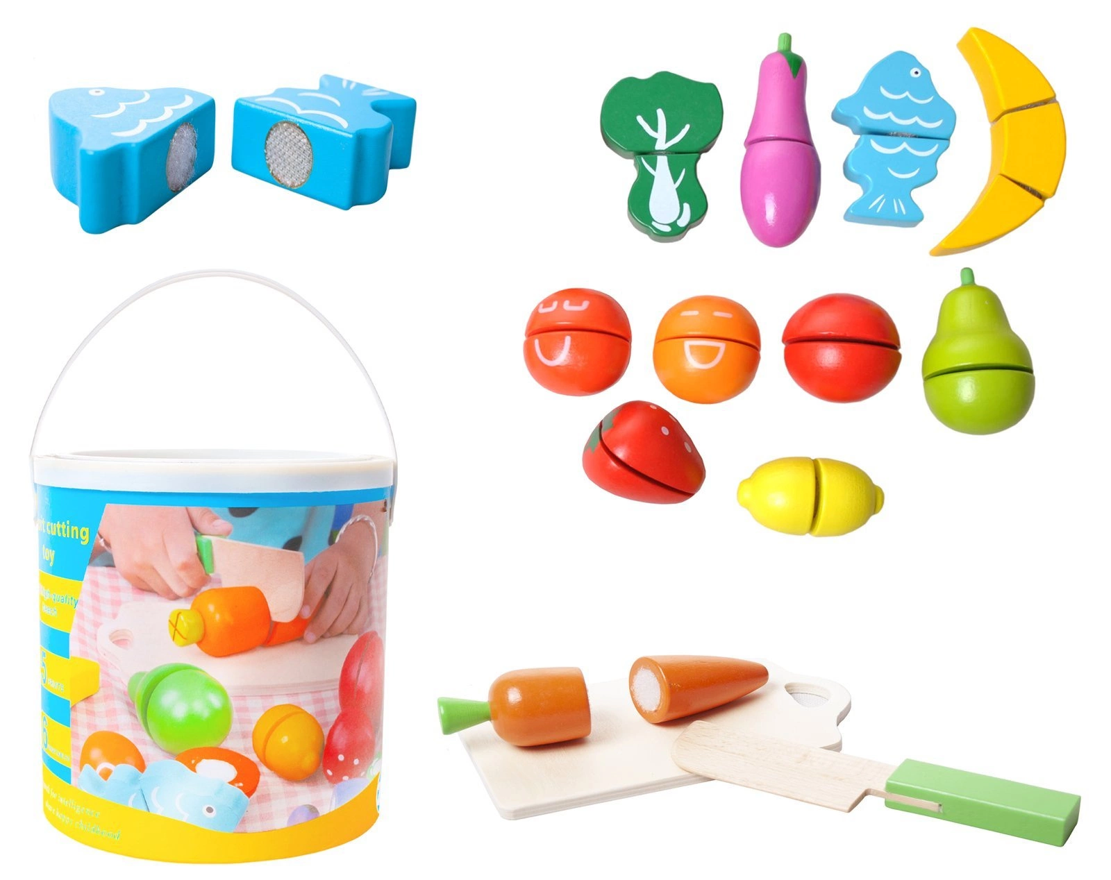 DREWNIANE OWOCE I WARZYWA DO KROJENIA NA RZEP WE WIADERKU