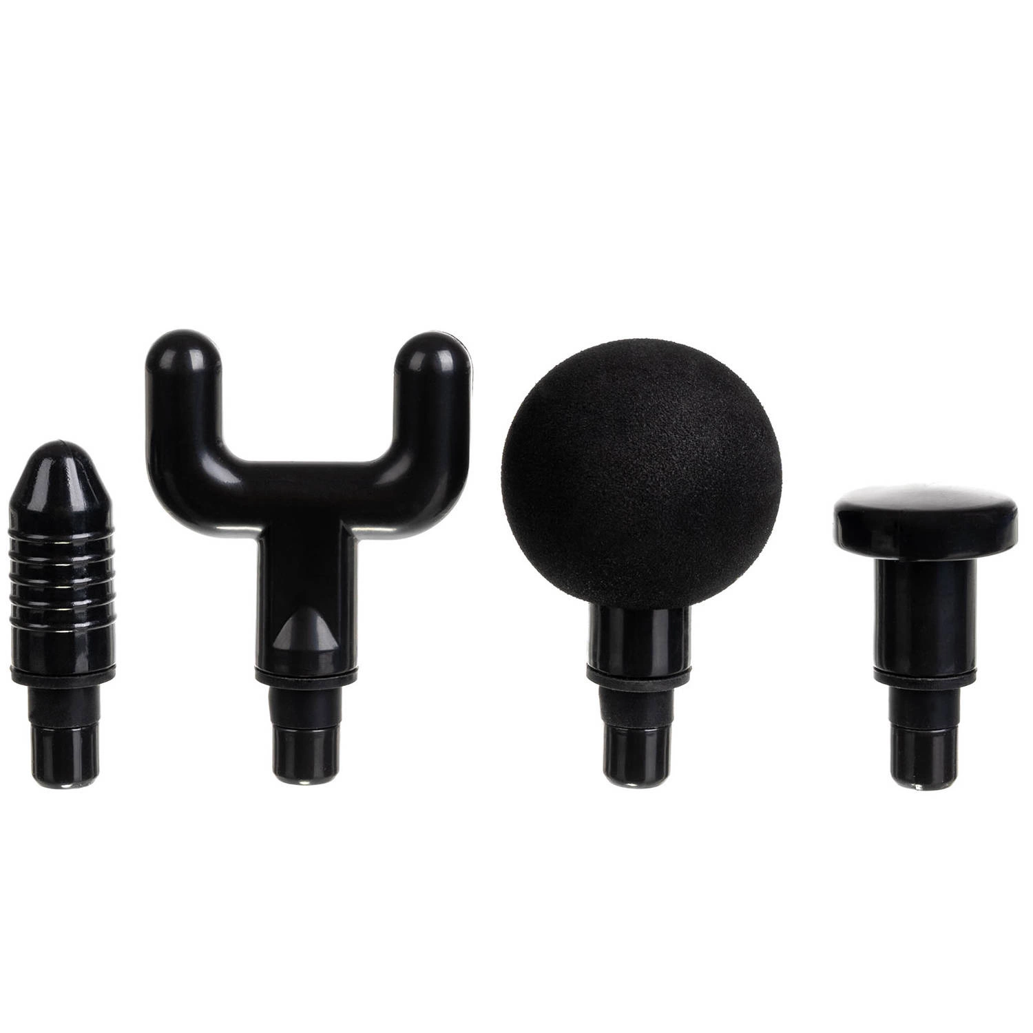 Pistolet do masażu posiada w zestawie 4 wymienne głowice masujące różnego typu, więc łatwo można zmienić typ masażu oraz dopasować końcówkę do własnych potrzeb. Znaleźć można tutaj końcówkę dedykowaną specjalnie do masażu kręgów, wyprofilowaną końcówkę do przegubów, a oprócz tego również końcówkę do wszystkich części ciała i specjalną końcówkę dużych grup mięśni.