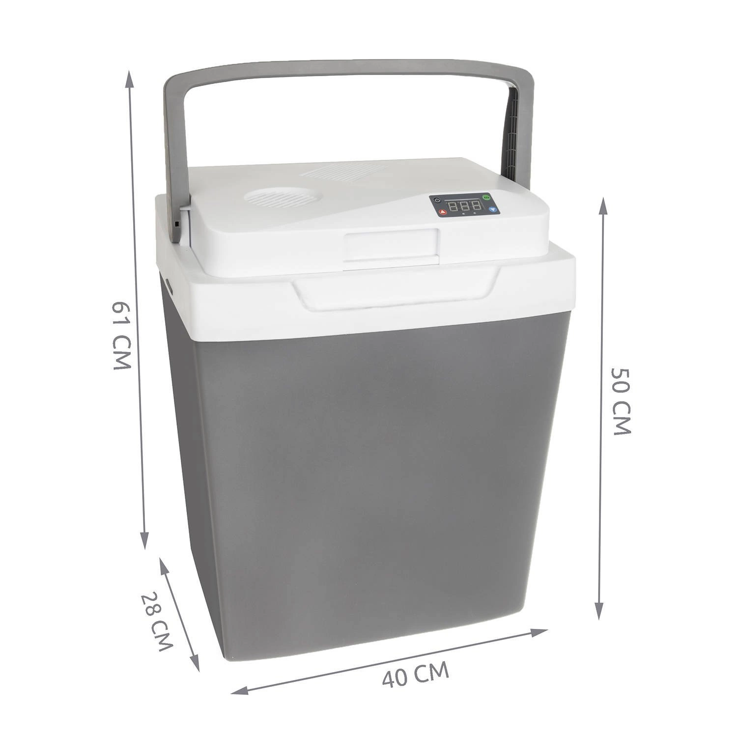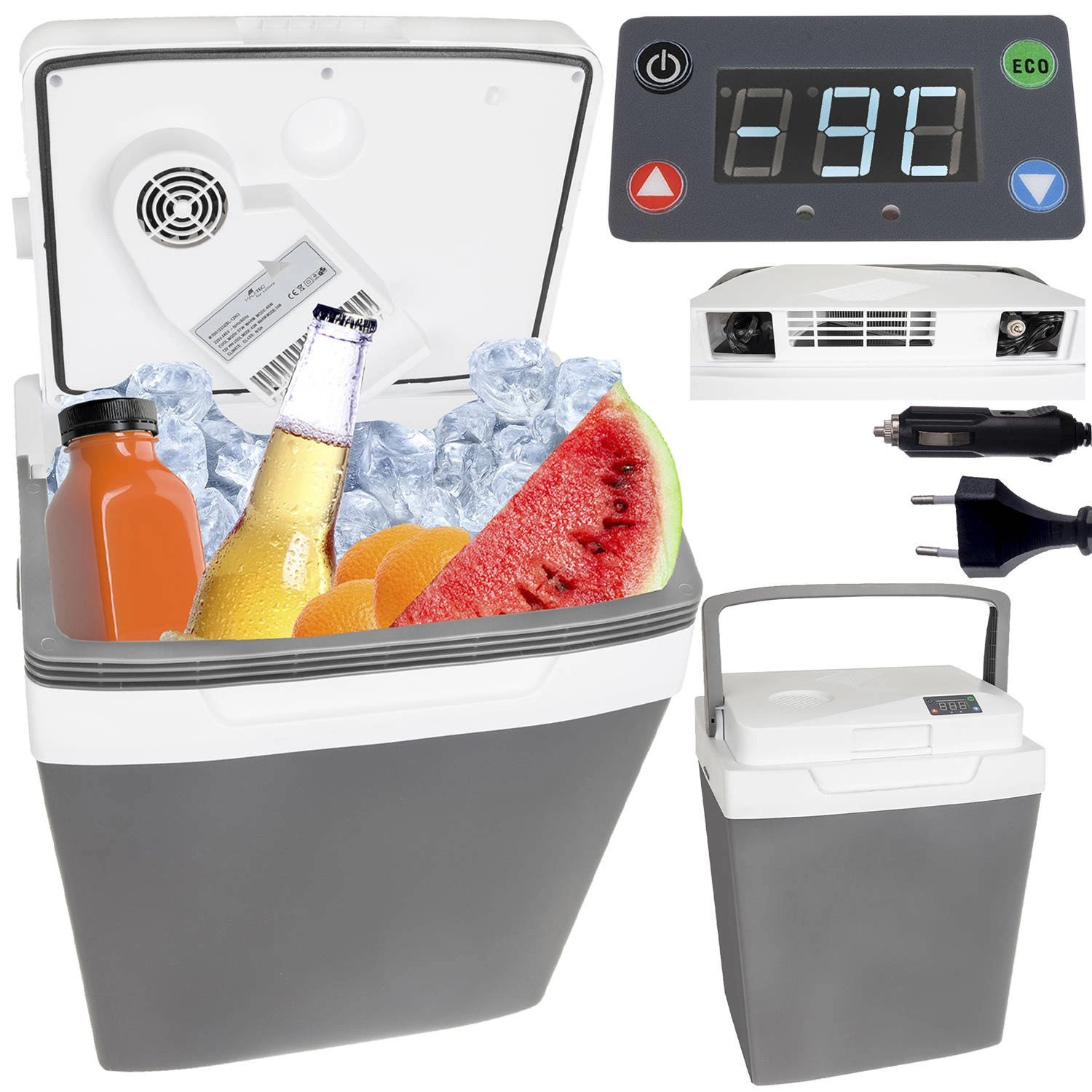 - SPECYFIKACJA – pojemność: 33 l; termostat: tak; zasilanie z zapalniczki samochodowej:12 V; zasilanie sieciowe: 220 V; tryb chłodzenia: tak; tryb grzania: tak; temperatura chłodzenia: 17-22 stopni poniżej temperatury otoczenia; temperatura grzania: 55-65 stopni; tryb ECO: tak; wymiary: 50/40/28 cm; waga: 4,8 kg; waga z opakowaniem: 5,5 kg
