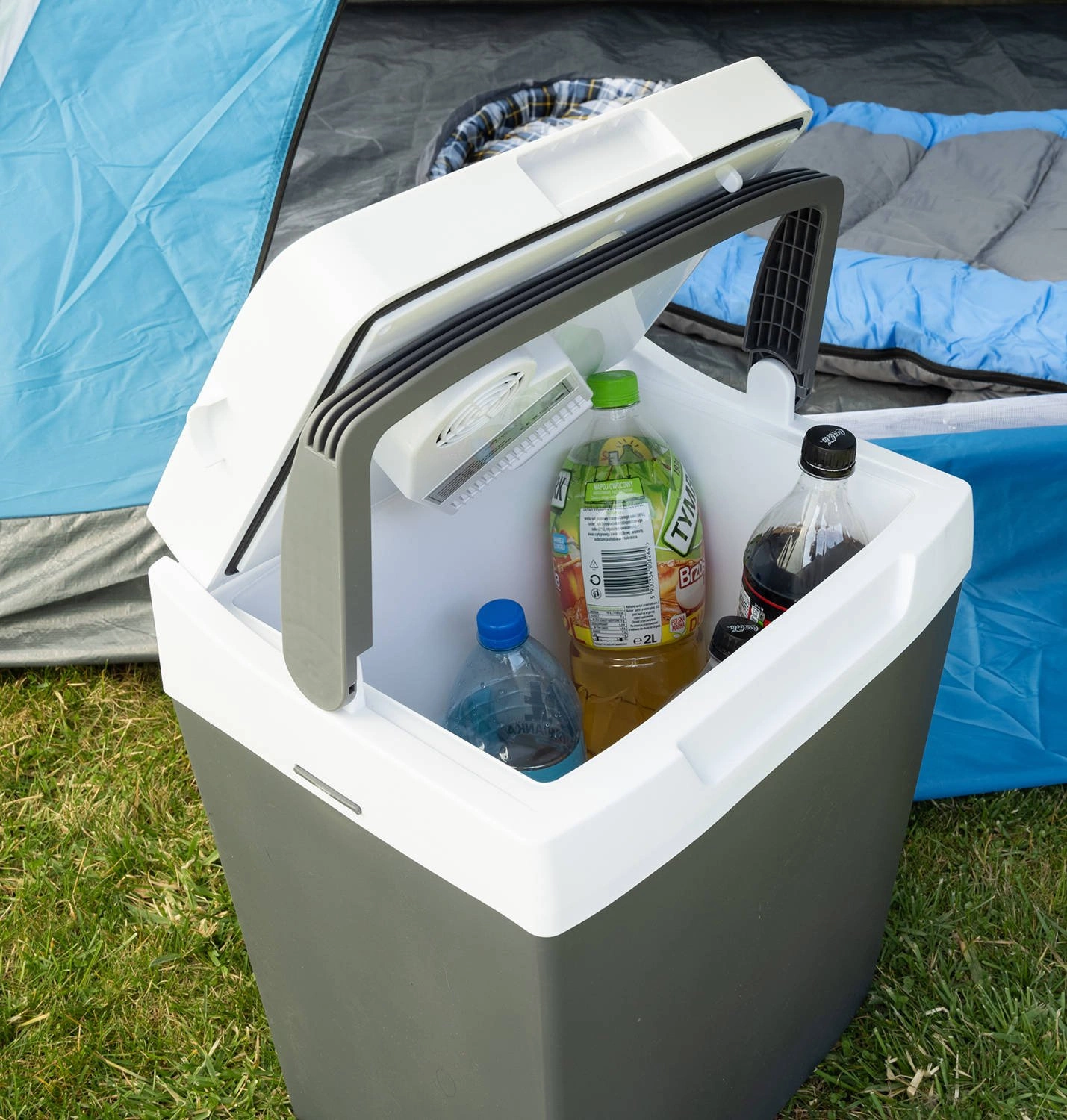 Czym byłaby lodówka turystyczna bez możliwości chłodzenia prowiantu? Prezentowana przenośna lodówka na prąd będzie idealna do przechowywania w zimnej temperaturze napojów, mięsa na grilla, półproduktów, owoców itp. Turystyczna lodówka elektryczna ma pojemność aż 33 litry, więc bez problemu pomieści duże zapasy rodzinne.