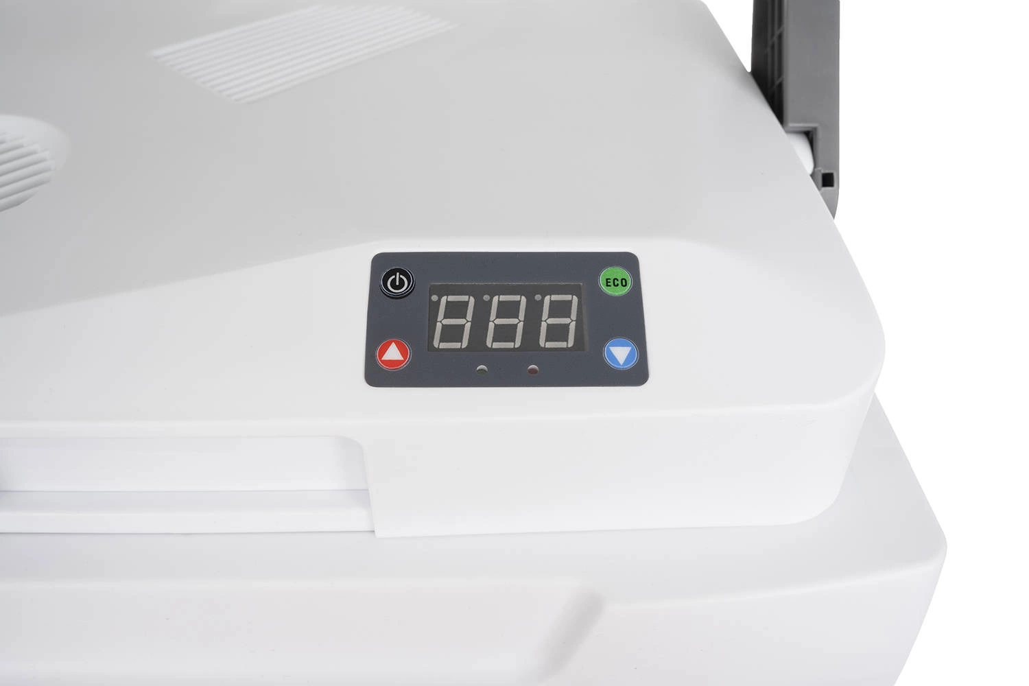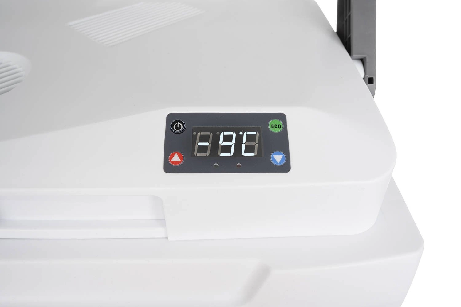 Bardzo przydatną funkcją, którą posiada ta turystyczna lodówka elektryczna, jest tryb ECO. W trybie tym lodówka zużywa znacznie mniej prądu niż standardowo, a zakres jej chłodzenia jest niższy. Tryb ECO z powodzeniem sprawdzi się, gdy temperatura zewnętrzna nie jest jeszcze bardzo wysoka i nie zależy nam na mocnym chłodzeniu prowiantu, a jedynie częściowym.