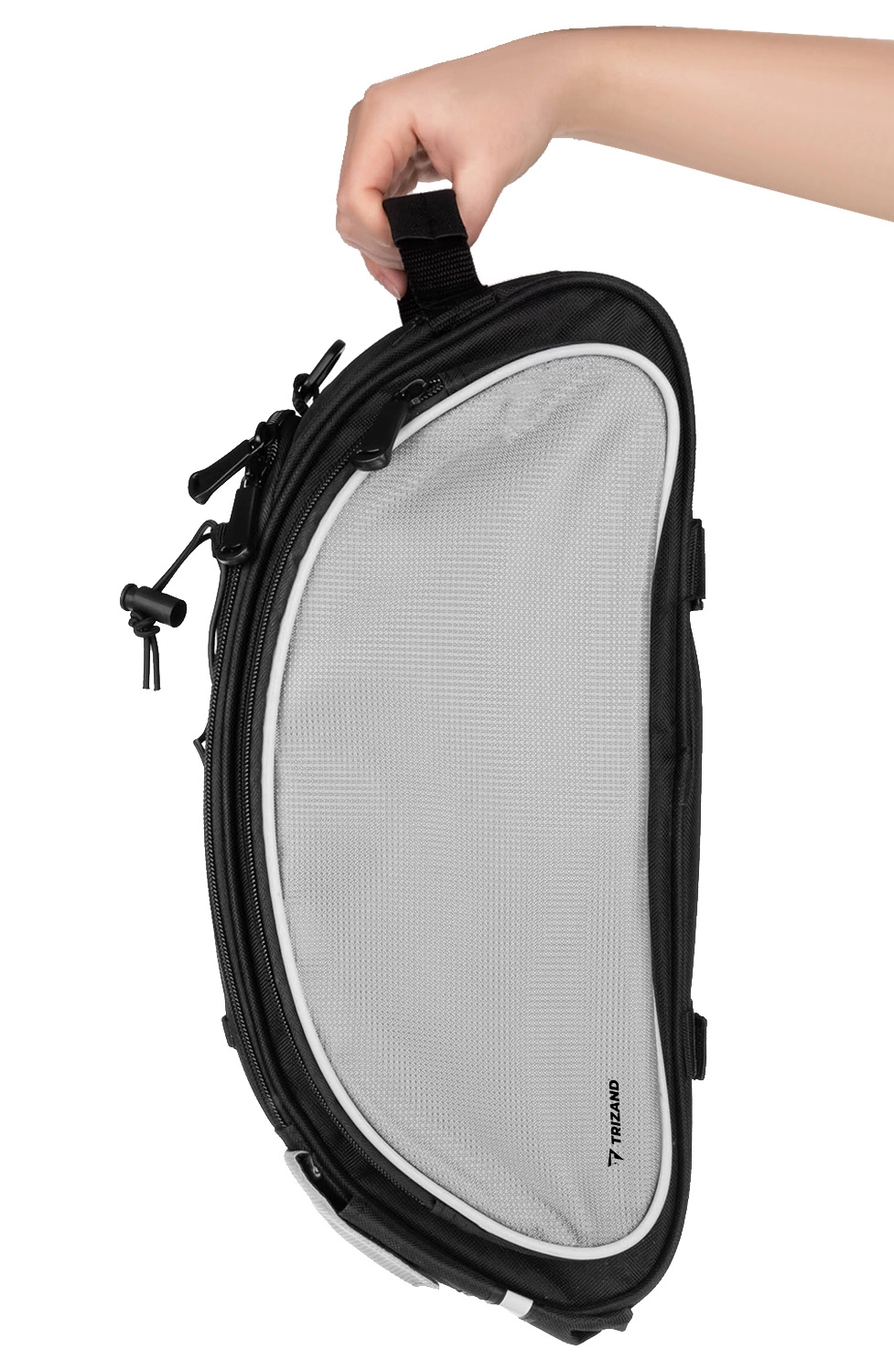 Dzięki paskowi, który jest w zestawie torbę możesz założyć na ramię lub przez ramię. Możesz również przenosić ją trzymając za uchwyt umieszczony w jej tylnej części lub po prostu założonej na bagażnik roweru.