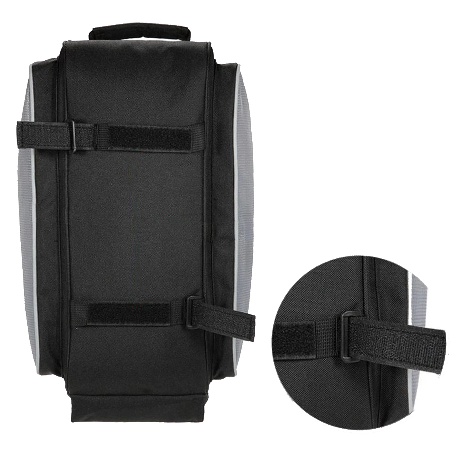 - SPECYFIKACJA – zapięcie: na rzepy; materiał zewnętrzny: poliester, wypełnienie: pianka EPE, pozostałe: guma + POM + żywica; pasek odblaskowy: tak; wodoodporna: tak; w zestawie: pasek; montaż: na bagażnik; pojemność: 13l; wymiary: 17/40/18 cm; waga: 0,380 kg; waga w opakowaniu: 0,48 kg.