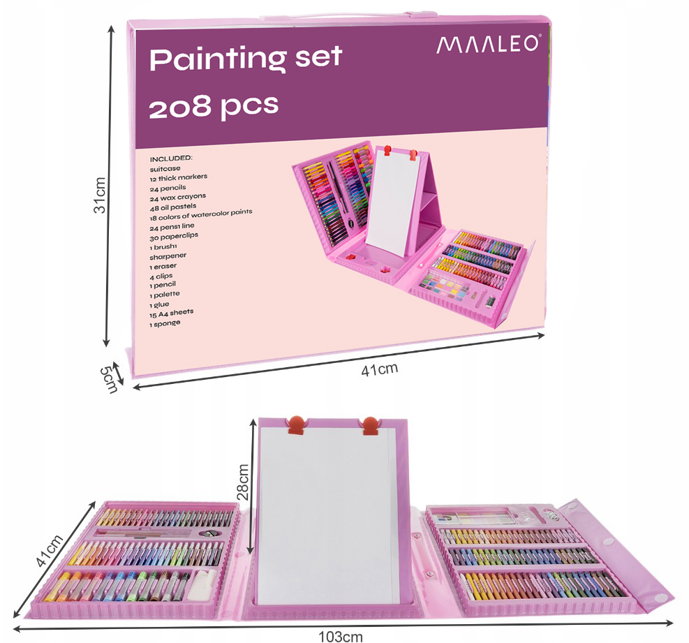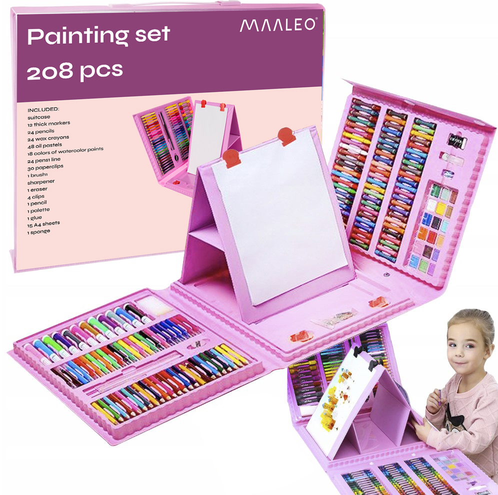 Zestaw do malowania dla dzieci, artystyczny plastyczny, kredki w walizce 208 elementów MAALEO!