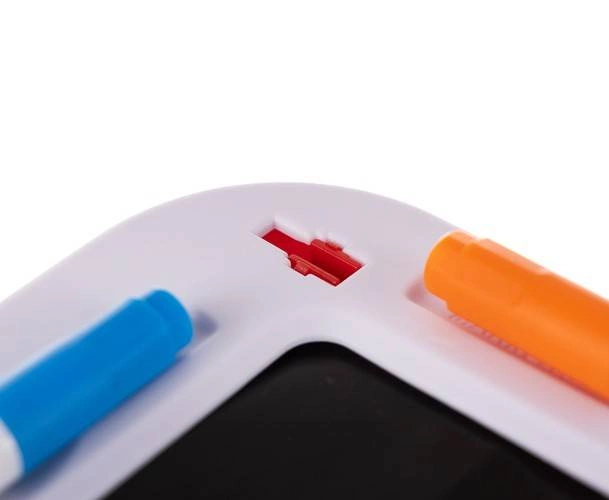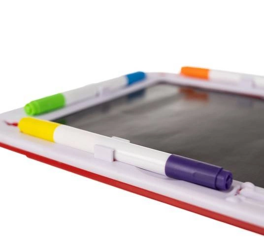 Tablica z tyłu ma wbudowane uchwyty na pisaki co daje dziecku możliwość trzymania ich w jednym miejscu. Ta opcja sprawi również, że nie pogubią się podczas przenoszenia.