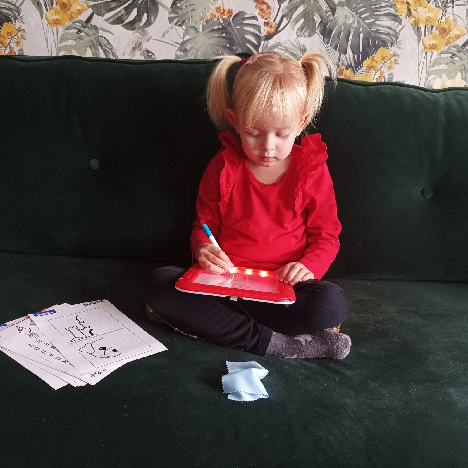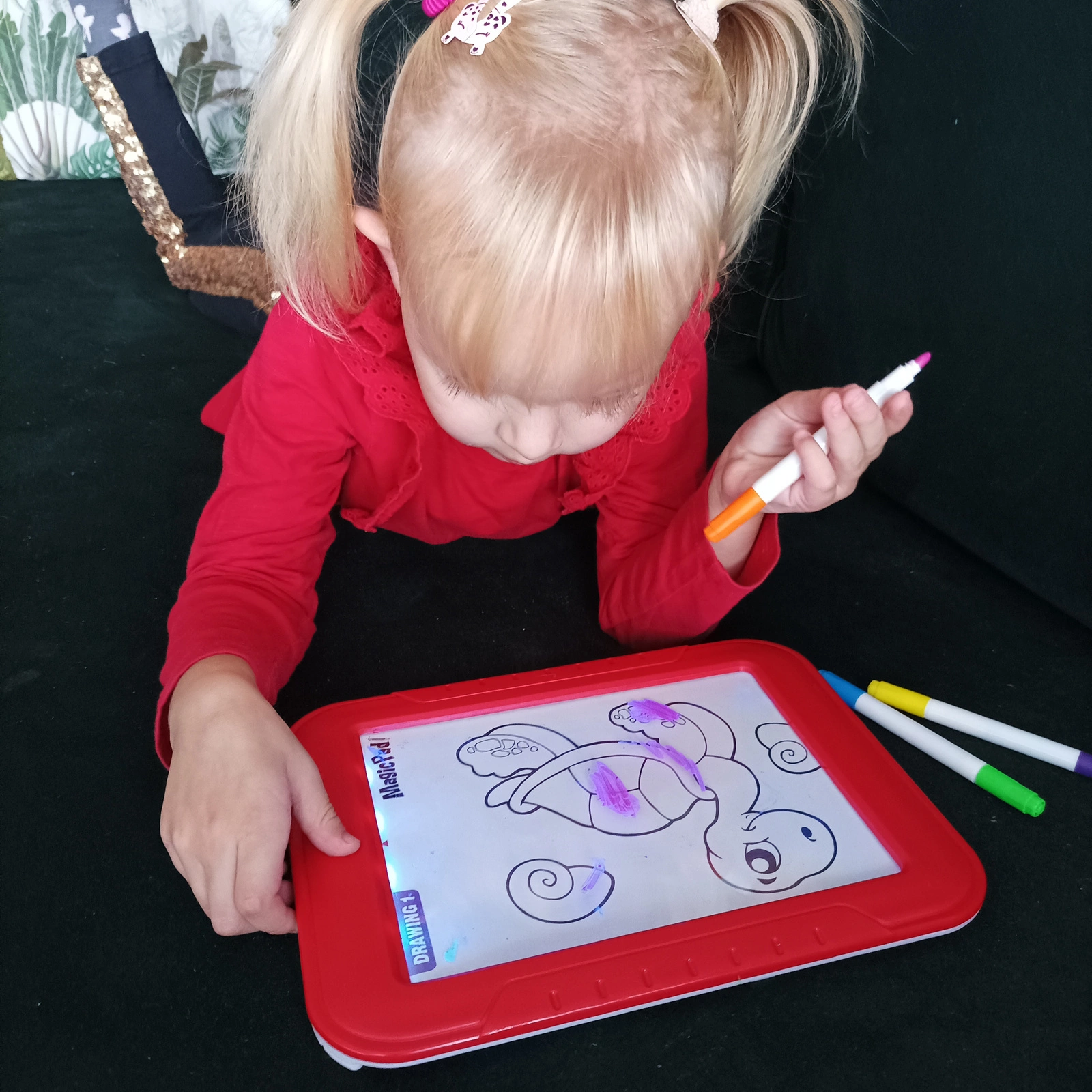 Rysujesz bez marnowania kartek, farb i kredek. Każdy rysunek możesz zmazać i narysować na nowo. Świetna zabawa która się nie nudzi.
