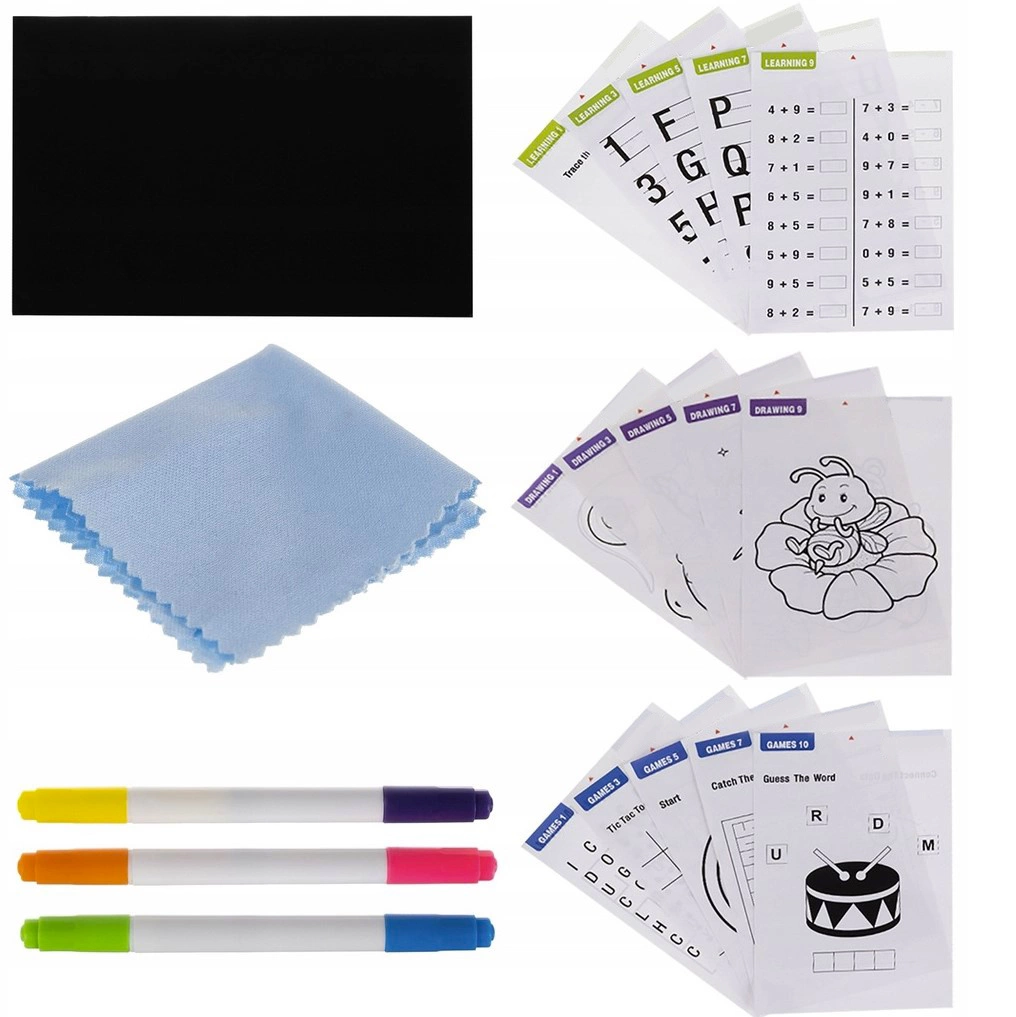 Do tablicy została dołączona ściereczka, za jej pomocą dziecko zetrze mazaki z szybki. Po wyczyszczeniu tabliczka znów jest gotowa na nowe wyzwania!