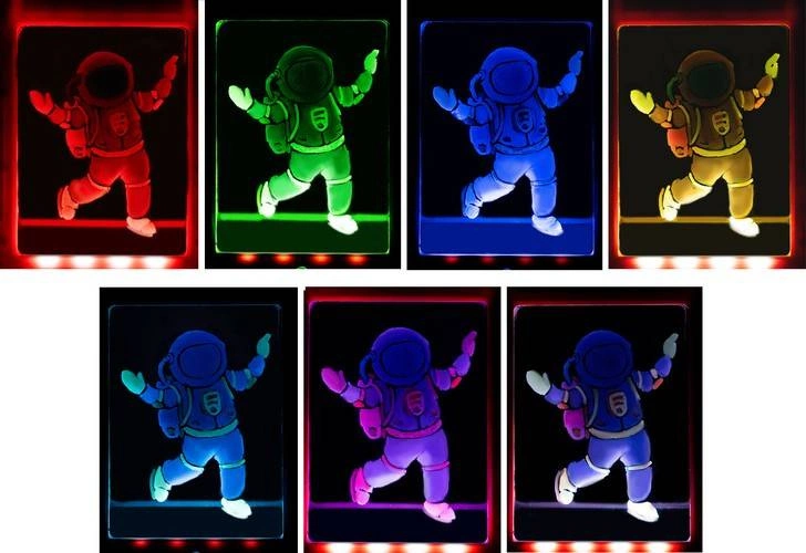 - PODŚWIETLENIE LED - podstawa zawiera 4 diody LED, które wytwarzają dużą ilość światła, tak by efekt fluorescencji był zjawiskowy! Jak rozpocząć zabawę? To proste. Umieść szablon z rysunkiem w podświetlanej tablicy. Odwzoruj na panelu to co jest na wzorniku przy użyciu specjalnych fluorescencyjnych mazaków, jeżeli czujesz się na siłach możesz samodzielnie wykonać rysunek. Włącz oświetlenie. Kolory mazaków będą się zmieniać pod wpływem światła. Pamiętaj, że najlepsze efekty są widoczne w ciemności.