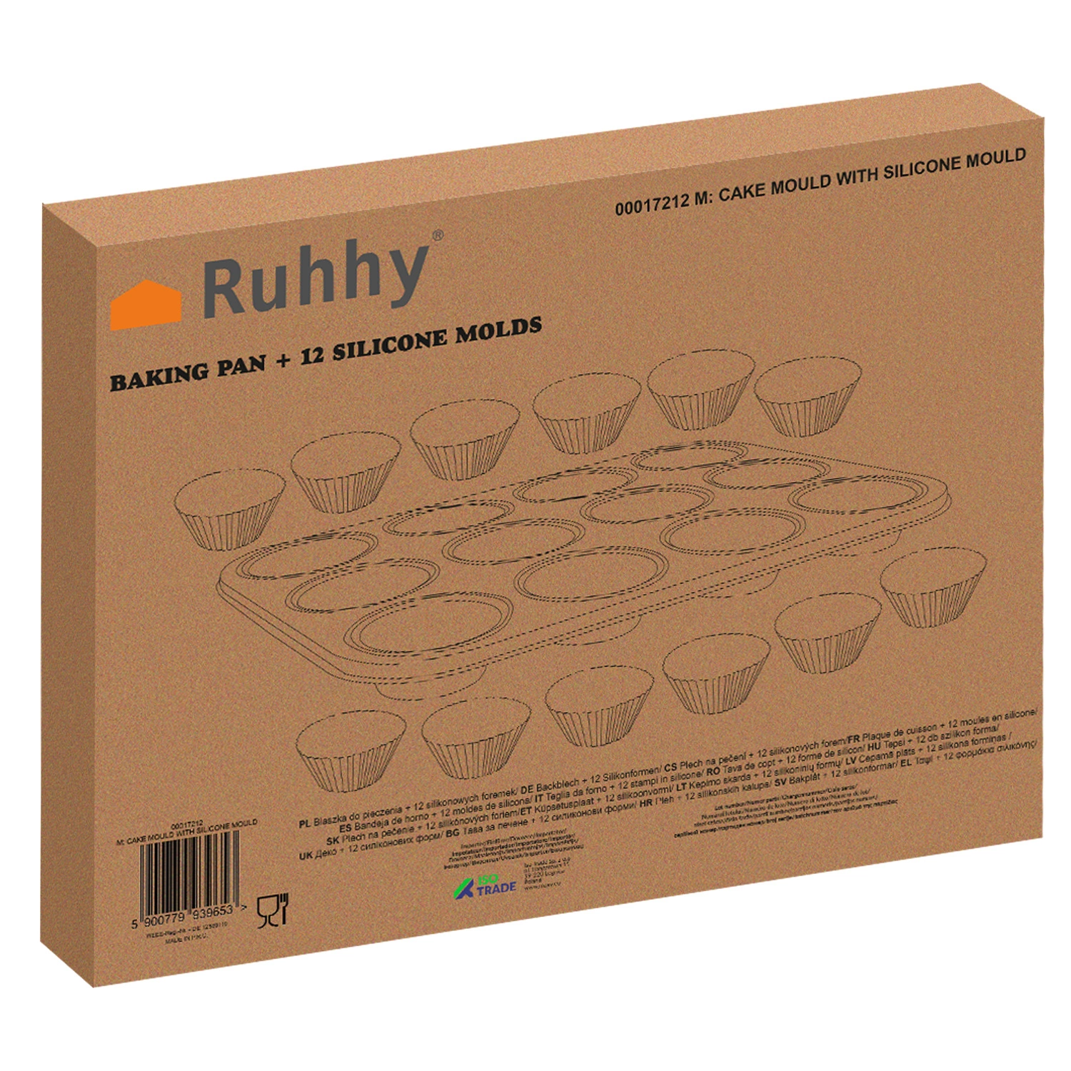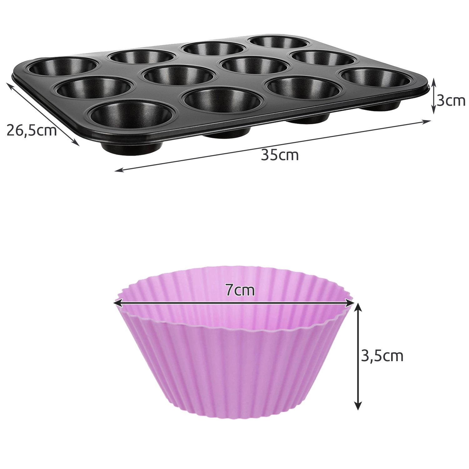 BLASZKA DO PIECZENIA MUFFINEK + 12 SILIKONOWYCH FOREMEK