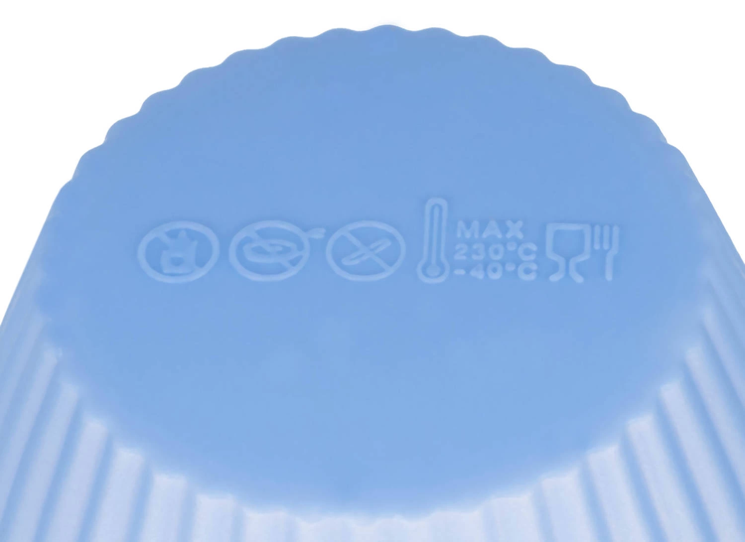 Do pieczenia posiadają wygodną, elastyczną konstrukcję. Komplet składa się z 12 foremek w atrakcyjnych, pastelowych kolorach. Silikon jest bardzo wytrzymały, wodoodporny i odporny na temperatury od -40° do 230 stopni.