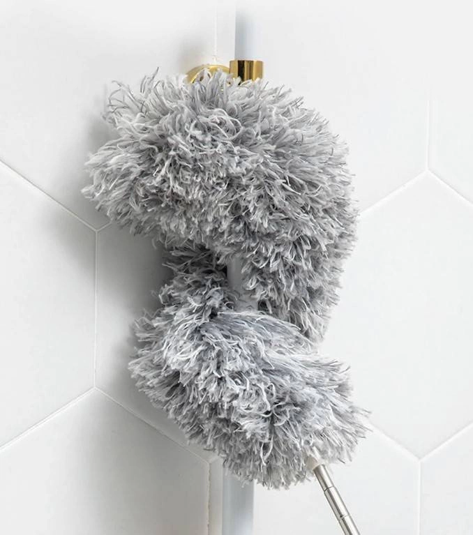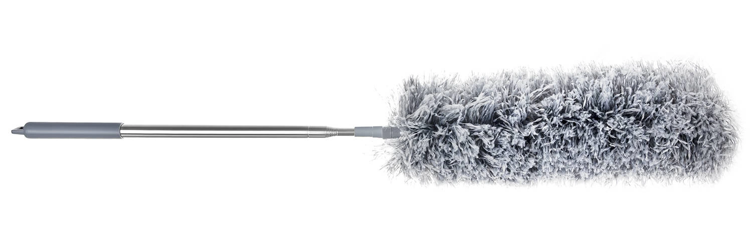 Miotełka jest wykonana z mikrofibry, która z łatwością eliminuje kurz. Materiał można nawilżyć wodą lub sprzątać na sucho, np. pajęczyny w domkach letniskowych. Szczotka jest bardzo elastyczna, dzięki czemu dotrze do najmniejszych zakamarków