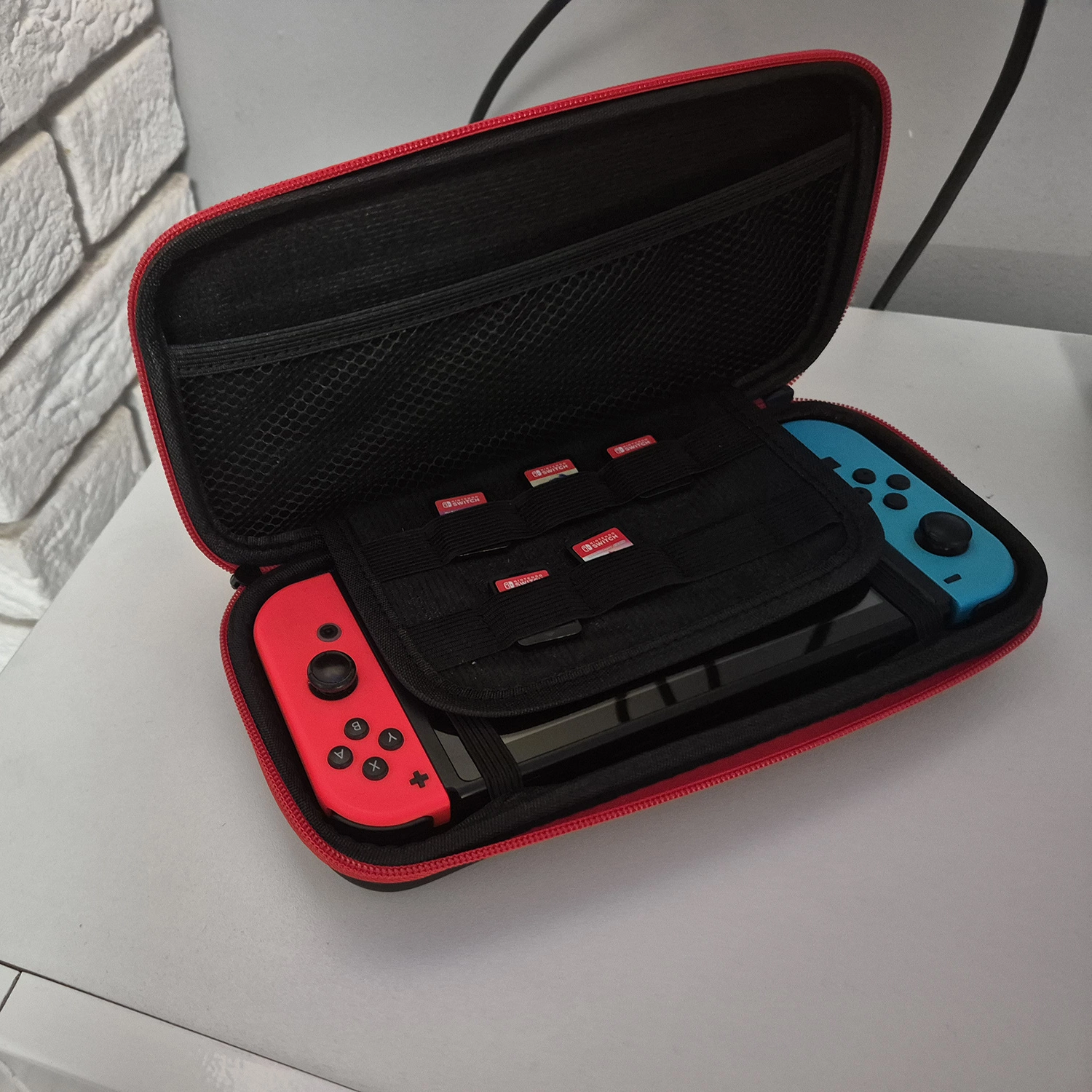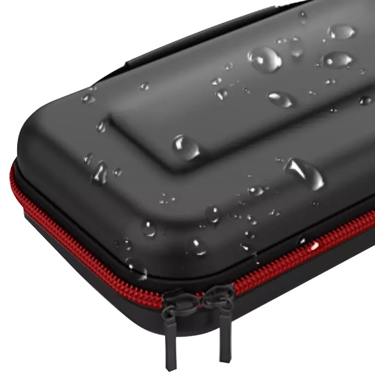 - SPECYFIKACJA - kolor: czarno/czerwony; materiał zewnętrzny: PU, materiał wewnętrzny: pianka EVA + polar, pozostałe: poliester + karton + guma + nylon + stop tytanur, pozostałe: poliester + karton + guma + nylon + stop tytanu: wysokiej jakości zamiennik do konsoli Nintendo Switch; wymiary: 27 x 13,5 x 6 cm; waga: 225 g.; waga w opakowaniu: 233 g.